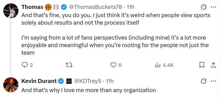 杜兰特:这就是为什么我更爱自己而不是任何球队。